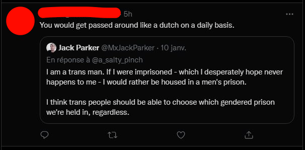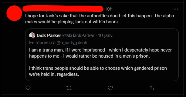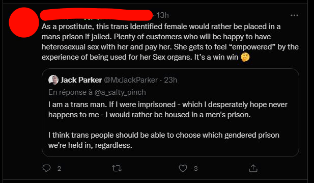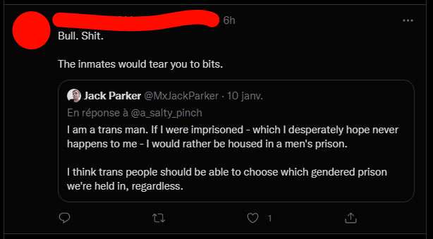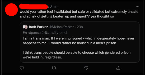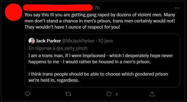 This tweet alone got me a significant amount of harassment, as did the following couple more in the thread. The one which got me the most extreme amount of harassment and that has me wanting to talk about trans men and prison is this: