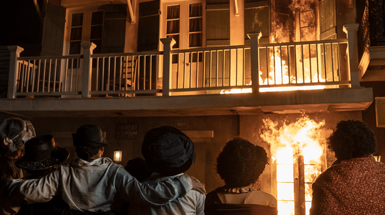 We’re given a peek into the lives of the sex workers that Louis managed before we hear the way the rich white men who own various other brothels speak about them. Our introduction to their world includes the aftermath of an assault where a sex worker is framed as being in the right for violently defending herself. The work is by no means glamorized, but it is also not treated as some sort of unique horror into the context of the intersection of racism and sexism and poverty that the women we see would have been subjected to at the time. Other workers gather around the scene and even giggle over the comments one of them makes, which was deeply relatable to me as someone who has worked in brothels. They accurately showed the sort of camaraderie that forms in those environments.
